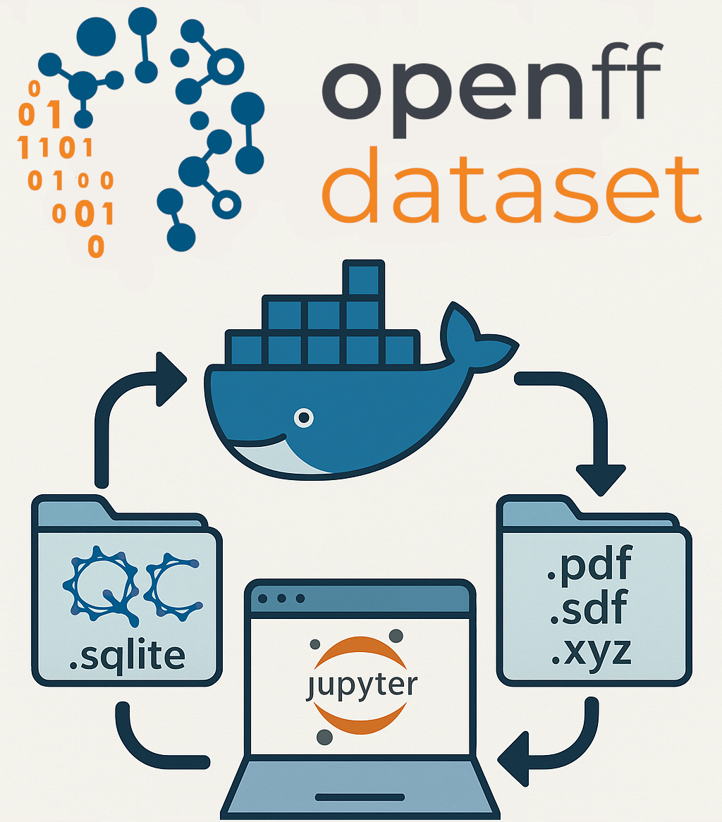 To ensure timeless accessibility, we also provide a Docker image capable of processing these datasets that contains the current Python and QCArchive versions and their dependencies. Upon spinning up a Docker container, a user will be met with a Jupyter notebook entry point that demonstrates how to access the data used to fit our force fields. We are delighted to offer this alternative option and anticipate that it will provide another convenient method for you to leverage our work.